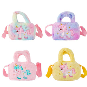 Bolso de hombro cuadrado de felpa con dibujos de unicornios para niños, bandolera pequeña de cuerpo cruzado para niñas de guardería